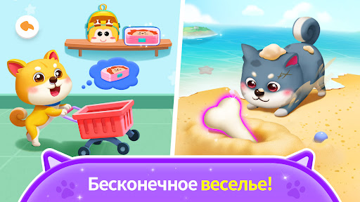 Щенок голоден, накорми его гамбургером, пончиком или пиццей. У нас есть около 30 видов еды. После кормления, смой с него грязь в ароматной ванной с пеной. Когда собачка устанет, уложи ее спать. Твой питомец не вырастет без ежедневной заботы.