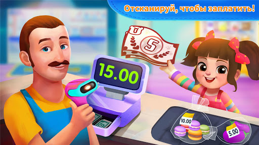 Мы купили все по списку. Теперь пойдем на кассу, чтобы оплатить все наши покупки! Оплата наличными, картой или с помощью сканирования? Выбери любой способ оплаты! После оплаты время приятных семейных покупок подошло к концу!