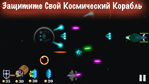 - Двигай космический корабль (держи и двигай пальцем по экрану)