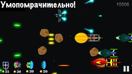 - Собирайте монеты, чтобы разблокировать дополнения и другие космические корабли в этой космической стрелялке