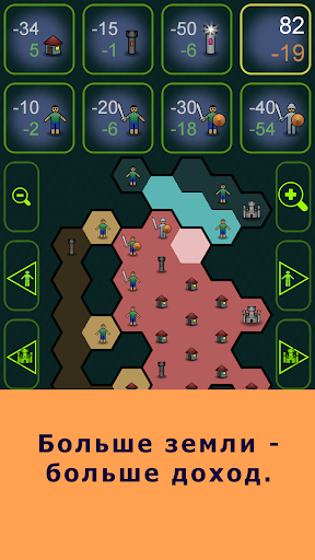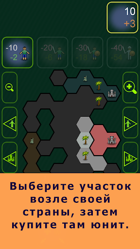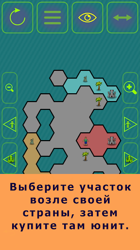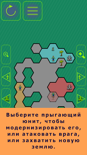 Выберите (прыгающий) юнит, чтобы модернизировать его, или атаковать врага, или захватить новую землю.
