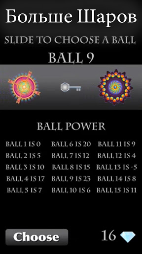 Вы можете выбрать другие шары с различными способностями прыжка: некоторые будут прыгать выше, другие будут прыгать ниже. В разделе шаров, вы можете выбрать и разблокировать 15 различных шаров с различными свойствами. Все шары можно разблокировать алмазами (внутриигровая валюта) или покупками из приложения.