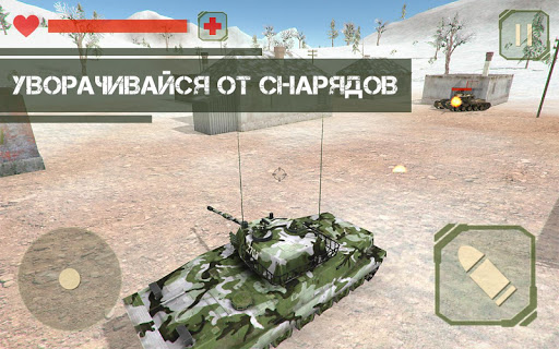 УПРАВЛЕНИЕ: Двигайте танк, нажимая комплект стрелочных кнопочек: вверх, вниз, вправо, влево. Жмите кнопку АТАКА, чтобы стрелять по врагу.