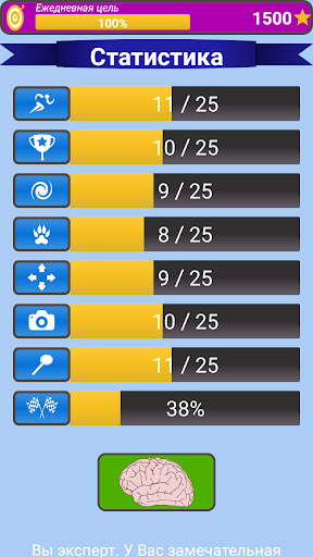 Следите за своим прогрессом игры в статистике, увеличивайте размер мозга, проходя тренажеры, и получайте ценные советы.