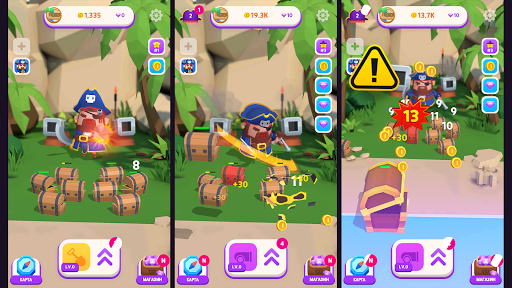 ◈ Аrrr ..! Храбрый и могущественный капитан будет бить, сталкиваться и стрелять в сундуки! Вам просто нужно нажать на экран.