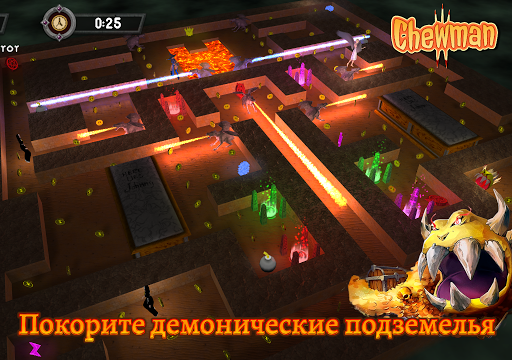 Chewman - игра-лабиринт, пакмано-подобная аркада, где Вы играете за демона, охотящегося за сокровищами. Классическая игра с поеданием точек, но в стилистике темного фэнтези и подземелий.