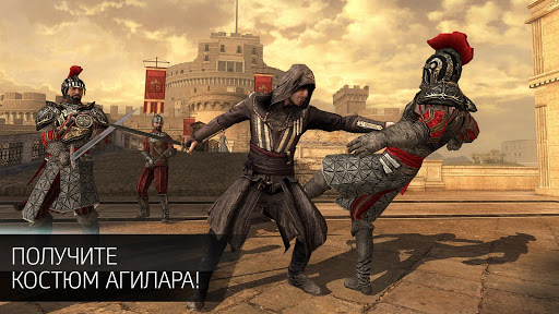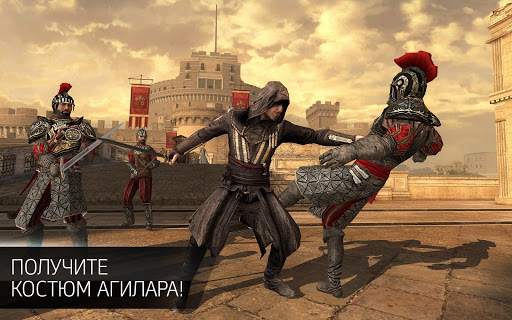 - ИЗМЕНЯЙТЕ своих ассасинов: используйте захваченные трофеи, чтобы снабжать подопечных новыми костюмами или оружием, среди которого — легендарные мечи, а также всем известный скрытый клинок.