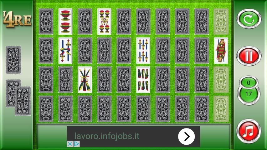 RE 4 весело пасьянсы онлайн обмен счета, объект игры состоит в том, чтобы поместить все карты от туза до девяти из одной масти на той же линии, в надежде, что десять вышли после того, как вы закончите все карты.