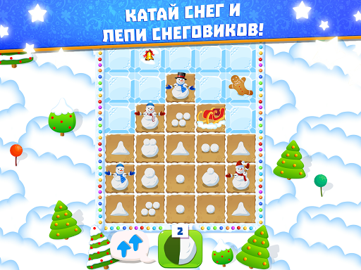Играть просто, катаем снег, лепим снеговиков, снеговиков отправляем откапывать Деда Мороза.