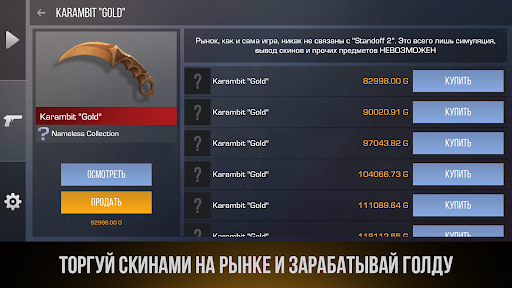 Внимание: данная игра является симулятором, созданным в развлекательных целях фанатом для фанатов. Игра никак не связана с "Standoff 2", соответственно вывод скинов НЕВОЗМОЖЕН!