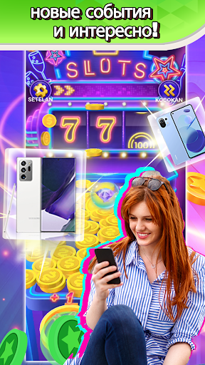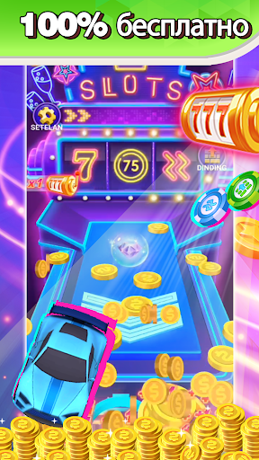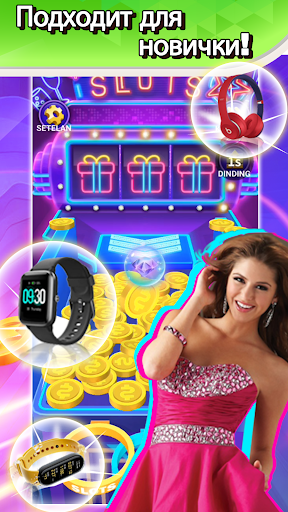 Чем больше ты играешь, тем больше можешь выиграть наград! Заработай больше монет, используя бонусы со специальными функциями, возводи стены монет, ускоряй толкатель счастливых монет! Но будь осторожен! Не позволяй им сыпаться с краев толкателя монет вне зоны твоей досягаемости.