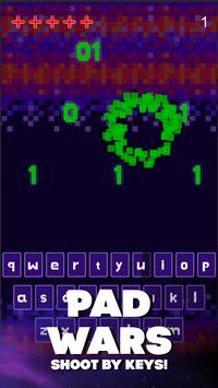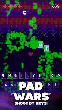 Пад-войны: стреляй клавишами - ретро стрелялка и клавиатурный тренажер, 2 в 1! Можно стрелять клавишами пада - буквами и цифрами - и учиться печатать быстро! Хочешь научиться пользоваться клавиатурой телефона, освоить быстрый набор текста на кей паде и быстро печатать без скучных упражнений? ‘Стреляй клавишами! Пад войны’ - это стрелялка в ретро стиле и клавиатурный тренажер одновременно! Сбивай падающие цифры и буквы с помощью пада на экране, нажимай клавиши вовремя, чтобы сбить вражеские цифры и буквы! Запоминай расположение букв и цифр на клавиатуре телефона! Стреляй клавишами пада быстро, как только можешь!