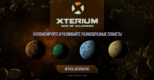 Xterium - это захватывающая RTS онлайн игра про космос, которая отправит вас в путешествие по Sci-fi галактике. Эта многопользовательская ММО предлагает открытый мир в режиме реального времени с большим разнообразием видов планет. Присутствует режим песочница, где вы сможете построить свою империю развивая планету за планетой, завоевывая миры и строя экономику своей цивилизации соревнуясь с другими императорами, чтобы стать безоговорочным правителем вселенной.