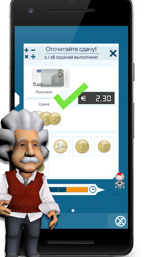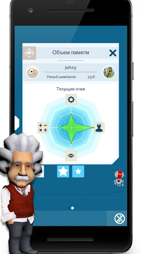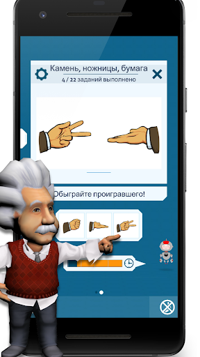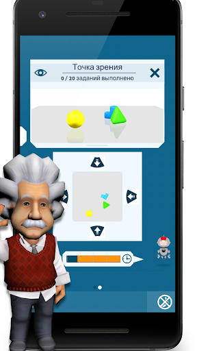 Альберт Эйнштейн и его милый ассистент Робо поддержат тебя на каждом этапе игры. Они всегда будут рядом, рассказывая подробности о каждом из упражнений и раскрывая его научную составляющую. Они поддерживают твою мотивацию на должном уровне и призывают держать мозг в тонусе.