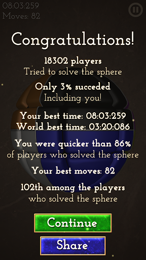 Если вы любите решать сложные задачи, попутно развивая ум и логику, то самое время скачать приложение и попытаться собрать кубик рубик в форме сферы. Новая интеллектуальная игра – пазлы для взрослых, наверняка увлечет вас и заставит серьезно подумать над ее решением. Умные игры помогут скоротать свободное время с пользой, расслабиться и почувствовать азарт в соревнованиях с другими игроками, которые любят clever, logic, twisty games.