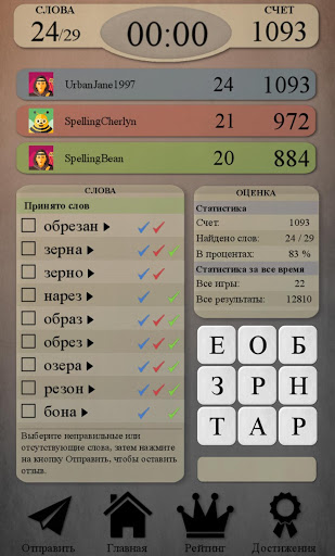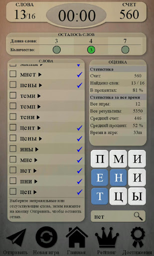 - Отправка отзывов. Мы стараемся работать на пределе наших возможностей, но от ошибок никто не застрахован. Экран обратной связи позволит отправить претензию по словарному запасу. Сообщайте нам о неправильных или отсутствующих словах — это поможет нам улучшать игру.