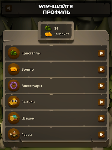 - Различные виды шашек, смайликов и аксессуаров