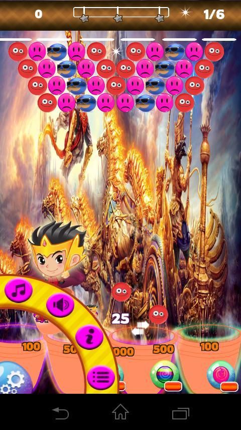 Сделать комбинации из 3 или более шариков одного цвета к сделать их взрыв. Очистить все пузырьки на уровень вверх.