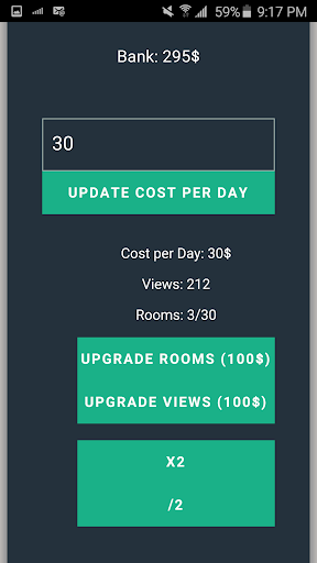 In this app you will be put in the position of a hotel manager. You will have to advertise your hotel, but in the same time you have to have enough rooms for all your guests. You have the ability to change the price whenever you want, which allows you to balance the supply and demand. So start managing your hotel now!