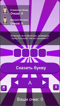 Игра где вам нужно отгадывать слова, кроме вас в игре будут боты, которые тоже буду отгадывать слова и могут выиграть. Тот, у которого больше очков тот и выиграет. В игре всего 100 слов!!!