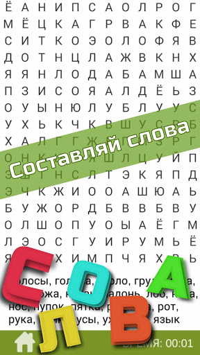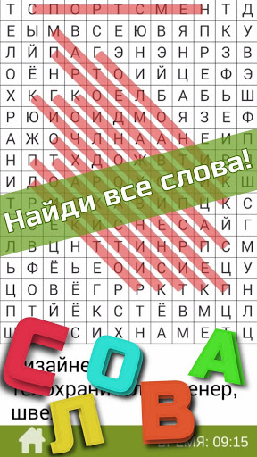 Новая игра - головоломка в жанре найди слова! Вам нужно выбрать любимую категорию и соединять буквы по словам, которые написаны внизу игрового экрана. Совершенно простое управление, коснитесь до буквы пальцем и ведите его до конечной буквы. Таким образом у вас получится линия, которая выделит все слово. В нашей игре есть два игровых режима, простой и на время. Три уровня сложности, на каждом из уровней сложности новые слова. Более 10 популярных тем, в будущем будем добавлять ещё больше. Основные темы это: еда, животные, знаменитости, города, профессии и цветы. Выбор языков, русский и английский.