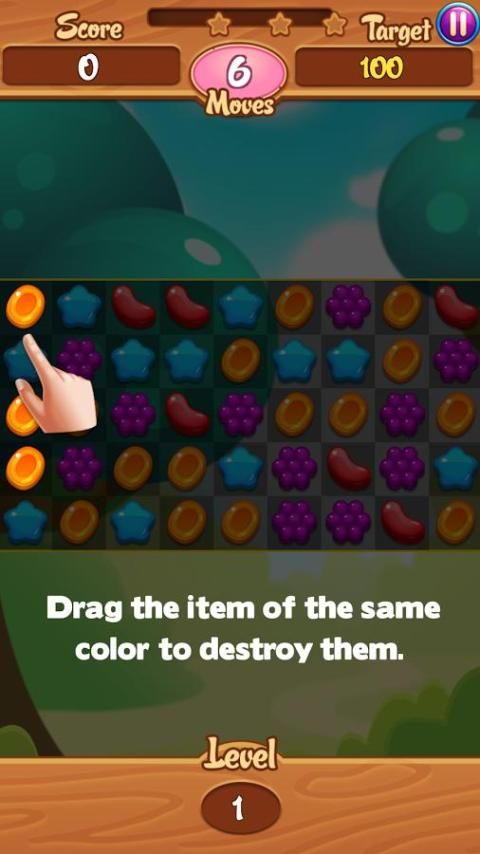 Матч 3 давка является устранение игра, связать с ума сладкий вместе, и чистить их.