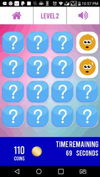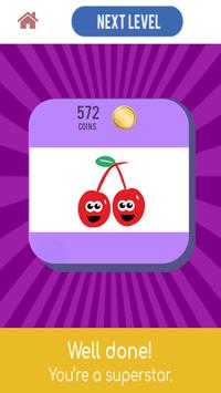 For each level, tap the square buttons to reveal and memorise cards with (fruit) images in order to match duplicate cards until all cards have been revealed.