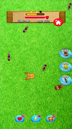 Smash all ants and other targets by tapping finger on them. Kill more ants and other target insects to clear game level of ant simulator and to get 3 star high scores. Ant smasher games