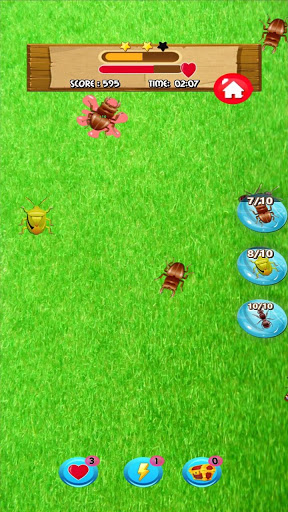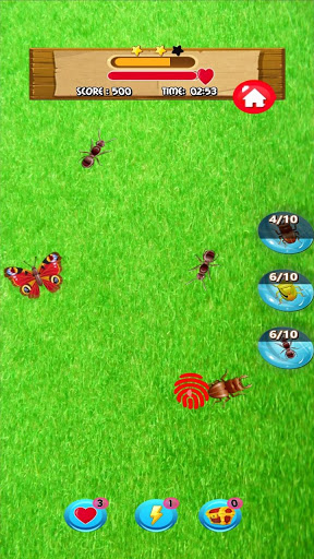 – bug smasher games for kids, you have to smash and kill the targeted insects only, if you smash another insect which is not the level target of insect killer you will lose a life and you have only 3 lives in each level of ant killer game.