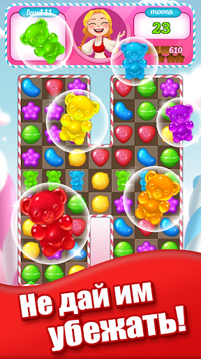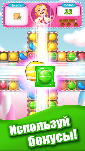 - Собери 4 или больше конфеток различных форм, чтобы создать суперконфету.