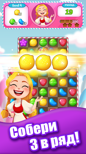 - Меняй местами и собери 4 или больше конфеток одного цвета и формы.