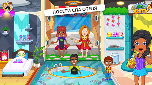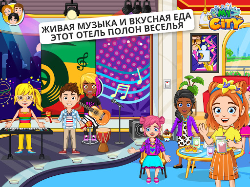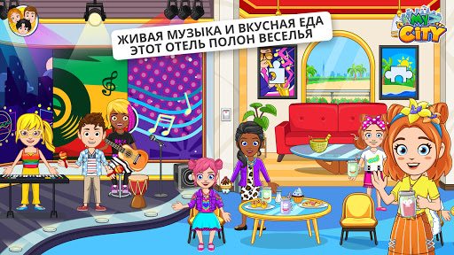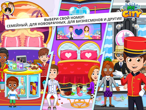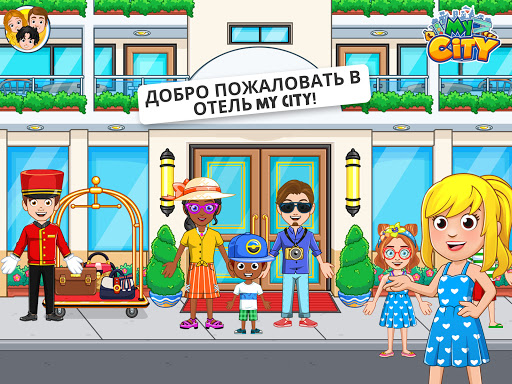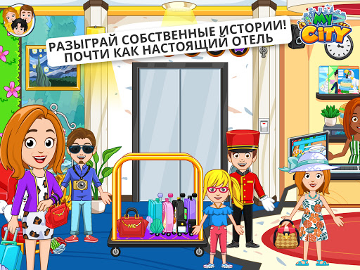 * Играйте разные роли с родными и друзьями, переодевайте персонажей и исследуйте каждую комнату в игре «Отель My City».