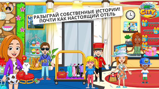 * Придумывайте самые разные истории и воплощайте самые смелые мечты в игре «Отель My City», где вас ждет виртуальная семья!