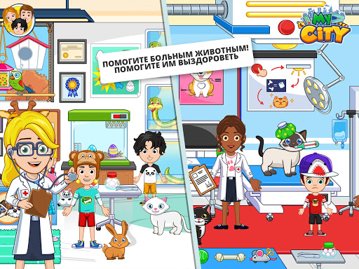 В игре «My City: приют для животных» вас ждет много веселых, увлекательных занятий и новых мест. Предлагаем 8 новых мест и более 50 домашних животных (львов и тигров, змей и кроликов, лягушек и даже енотов), которых можно привести в другие игры My City!