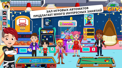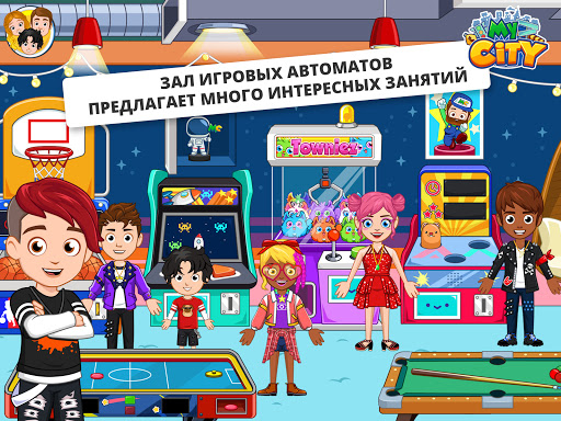 В My City только что открылся новый детский центр! В здании центра – шесть этажей! На каждом этаже – много интересных и замечательных вещей, которые можно изучать и исследовать. Посетите бассейн на крыше, поиграйте в лазерные стрелялки или расслабьтесь в комнате игровых автоматов, поиграв прежде в музыкальной группе вместе с друзьями. У вас всегда будет наготове интересная история, благодаря такому большому количеству комнат, мест и персонажей, с которыми вы сталкиваетесь каждый раз, когда играете в My City: детский центр. В этой игре никогда не бывает скучно. И помните: ее большое преимущество в том, что можно перемещать персонажи в другие игры My City. Так что берите с собой любимого героя и веселитесь от души!