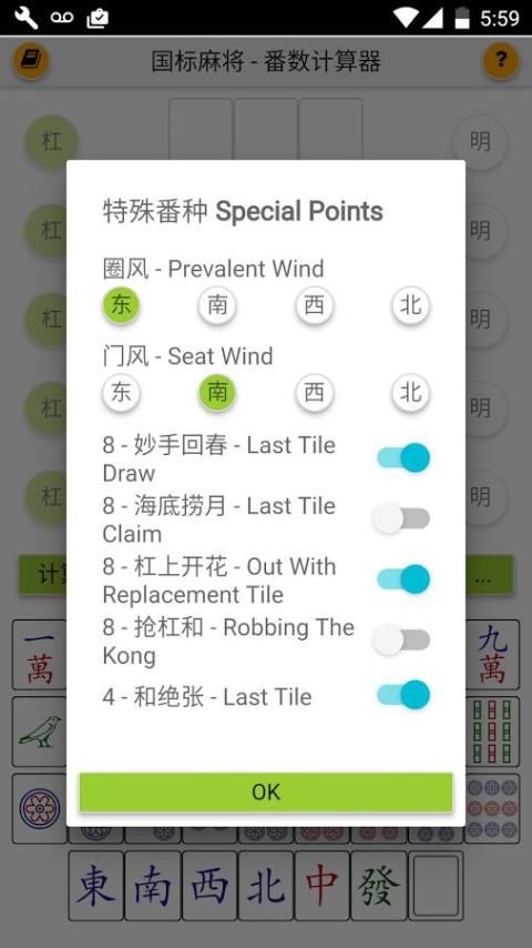 Если вы хотите играть с правилами Всемирной маджонг, но не знакомы с деталями, или просто не может вспомнить все 81 правил, это приложение предоставит вам удобную интерактивную ссылку в то время как вы играете, а также поможет вам рассчитать общее количество очков после того, как кто-то побеждает.