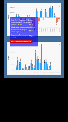 Игра полна игровых элементов, таких как значения отклонения для каждой сделки, рейтинги для каждого этапа, а также наглядное отображение графиков свечей от 1 минуты до 4 часов, полос Боллинджера, экспоненциальных скользящих средних EMA, объема, быстрого стохастика, RSI и многого другого.