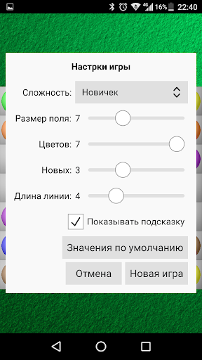 Также вы можете менять размер поля, число цветов и длину линии в ручном режиме.