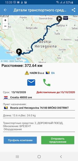 Самые распространенные предложения с этого сайта по перевозке грузов из Боснии, Сербии, Хорватии, Словении, Венгрии, Турции, а также грузов в / из Западной Европы и России.
