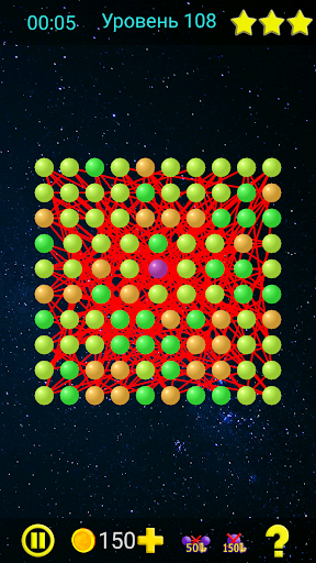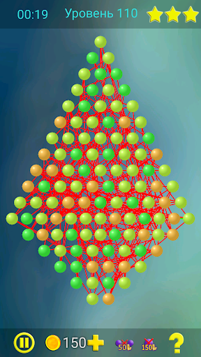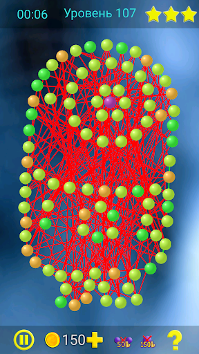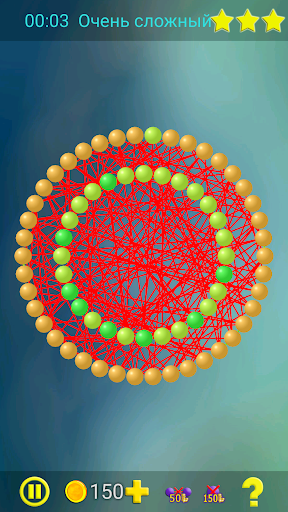 Цель игры состоит в том, чтобы перемещая вершины убрать все пересечения линий. Если линии пересекаются, то они окрашены красным. Линии без пересечений окрашены зелёным. Вершины имеют разные цвета в зависимости от количества линий, выходящих из этой вершины.