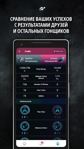 Официальное приложение Gran Turismo™ Sport позволит вам поддерживать связь с миром GT Sport в любое время и в любом месте. При входе используйте учетную запись PlayStation™Network.