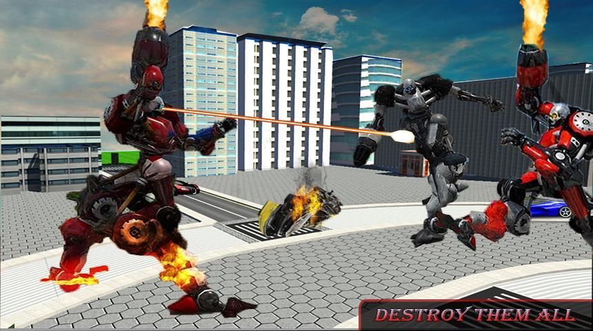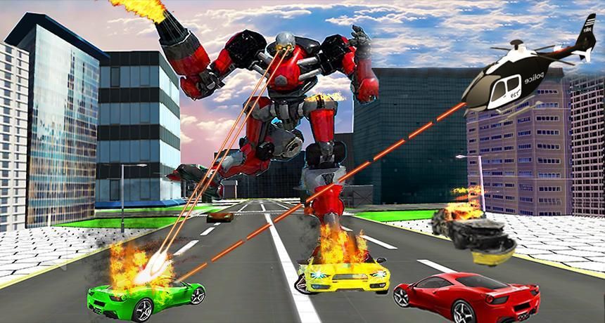 Уровень преступности увеличился и наш робот преобразования может превратиться в машину и маскировку в роботе спасение. Полиция робот боевые действия, как реалистическое действие полиции против преступников. Роботы могут запустить ракеты и пули в противника. Возьмите под свой контроль полиции полицейский автомобиль и убить противника. Вы можете превратиться в разъяренного спортивный автомобиль, дрейфуют по городу, выполнять трюки, а также и превратиться в поразительных убийца машины и кораблекрушений роботов. Это настоящая эпическая битва роботов между хорошим и плохим и великим городом разбойным преступлением является обязательной, чтобы остановить. Ваша стратегия боевых действий имеет значение, чтобы стрелять врагов.