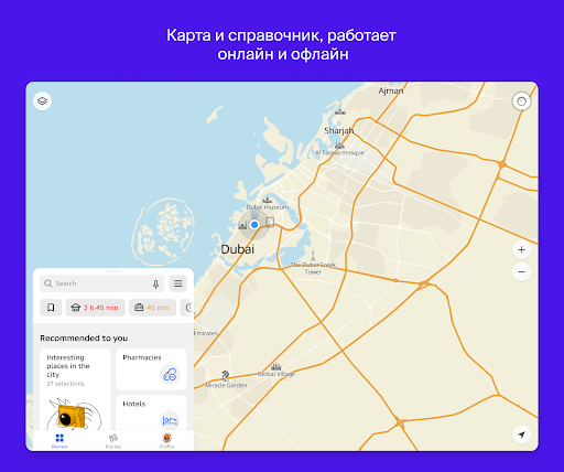 Urbi — подробный справочник с картами городов ОАЭ и GPS навигатор для пешехода и автомобиля. Приложение работает без интернета: достаточно один раз загрузить город.