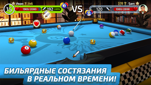 Брось вызов своим друзьям и соперникам со всего мира в абсолютно новом режиме бильярда - PvP! Играй в пул, забивай шары и наноси урон противнику.