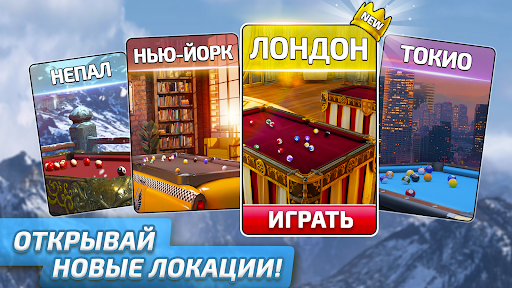 Играй в бильярд, как никогда раньше, с разнообразными уровнями любой степени сложности. Открой для себя множество увлекательных локаций и играй в бильярд в Нью-Йорке, Токио, Непале и многих других странах. Повышай свой рейтинг и получай доступ к более эксклюзивным локациям, где ты будешь играть против лучших игроков из мира бильярда.
