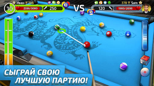 Играй партии и выигрывай специальные карточки, чтобы прокачать оборудование игры до максимума. Совершенствуй игру: улучшай параметры кия, выбирай крафтовые аксессуары, используй мелки для усиления удара во время партии! Выполняйте ежедневные задания и получай достижения, чтобы продвигаться быстрее.
