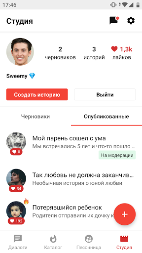 Лучшие чат-истории попадают в каталог, где вы сможете прочитать захватывающие сюжеты в виде мессенджера от первого лица.