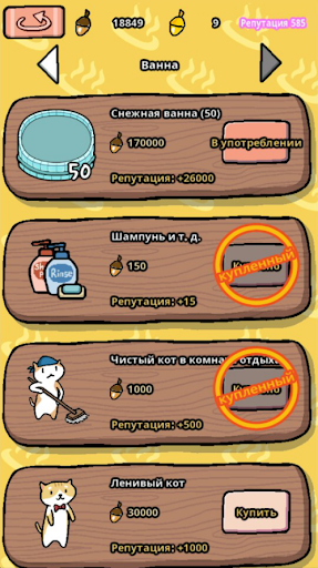 Покупайте различные банные принадлежности и сможете улучшить оснащение благодаря своим желудям.