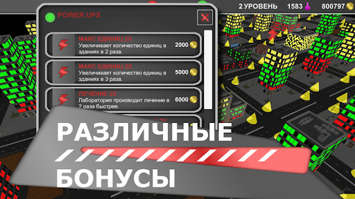 "Город пандемии" это игра стратегы, основанная на симуляции пандемии. Создавайте свой собственный город, выращивайте население и защищайте его от смертельной инфекции. Выведите лекарство для лечения инфицированных. Производить золото для обучения полицейских и солдат для борьбы с зомби и не позволять им занять небоскребы. Используйте собственные стратегии и различные тактики, чтобы остановить распространение инфекции. Прекратите распространение эпидемии города.