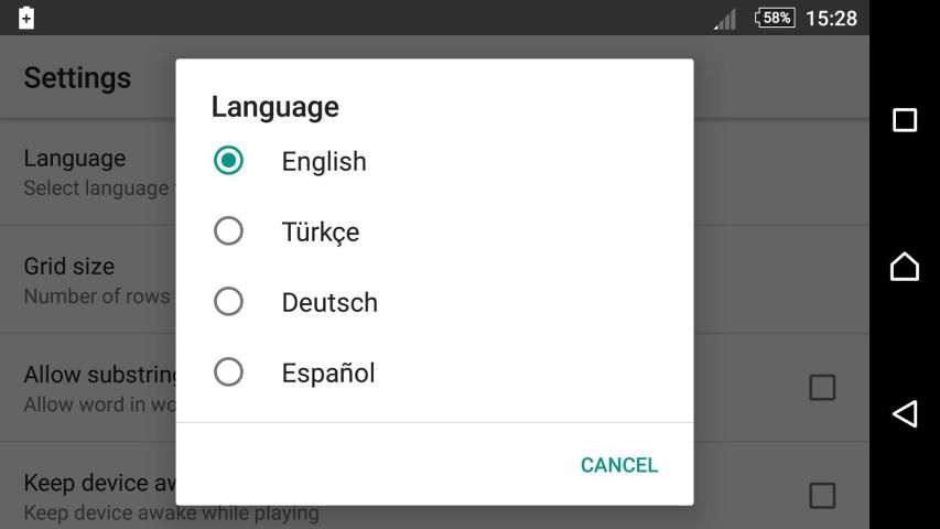 ★★★ Язык: Word Search Мелес доступен на 17 языках.